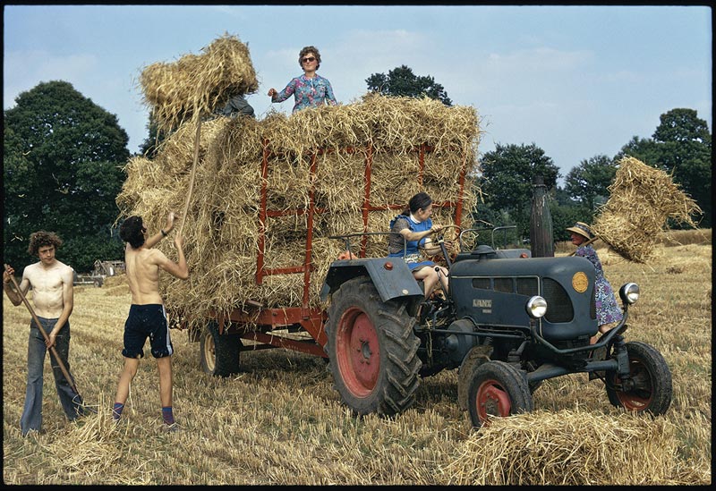 J’ai commencé par photographier Poilley en couleurs. De temps en temps, j’invitais tout le monde à une projection de diapositives. Il fallait transporter, de l’église à la salle des fêtes au plancher de terre battue, assez de bancs pour asseoir tous ceux qui venaient voir, au milieu des cris et des rires, leur propre vie, leur travail de tous les jours, étonnés de trouver cela si beau.